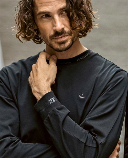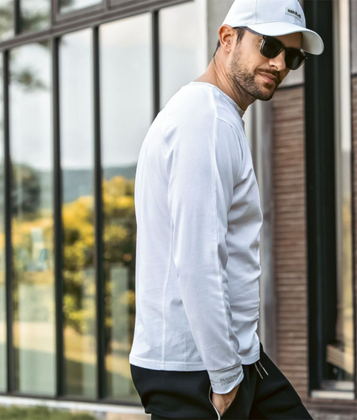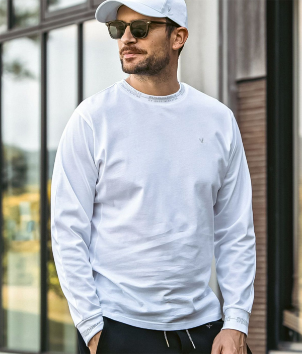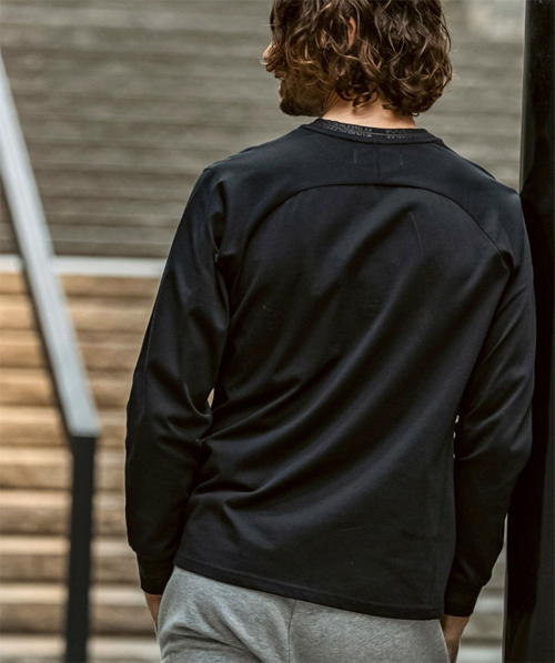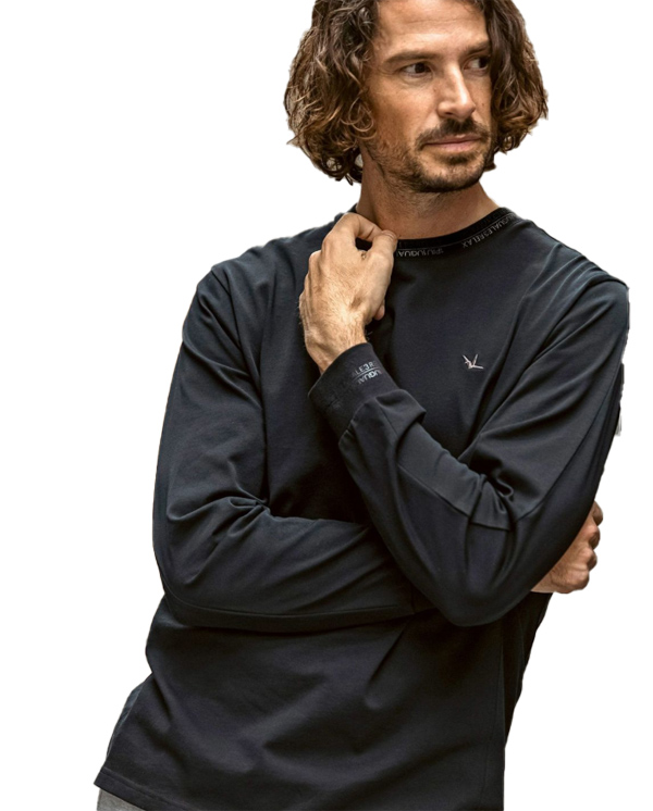 首元と袖口にブランドロゴを配置した長袖カットソー。