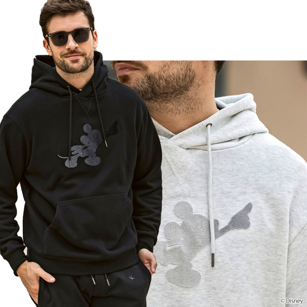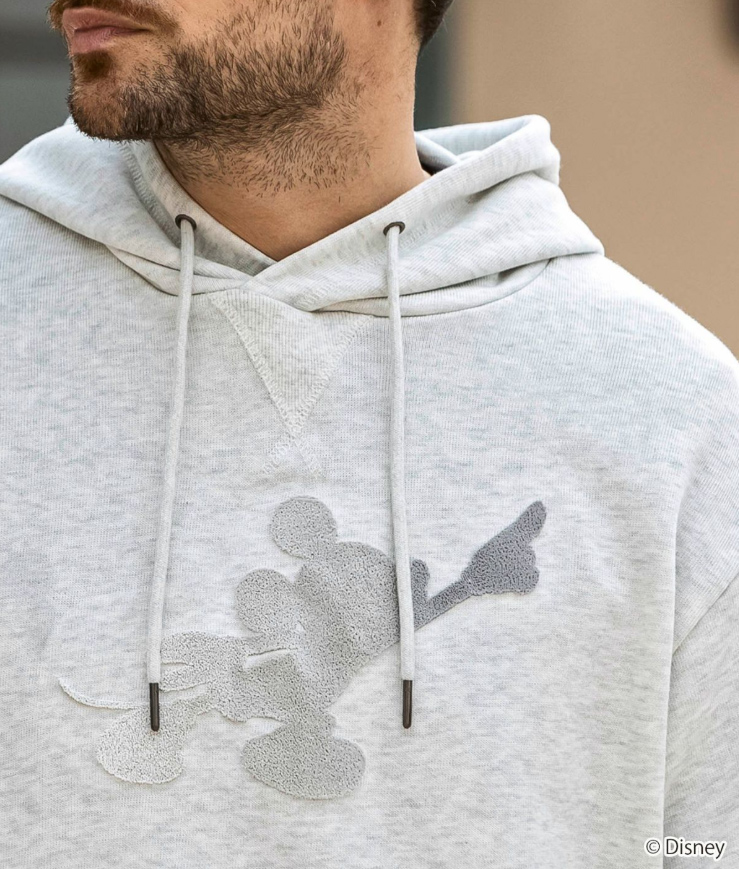 世界中で愛されるディズニーの人気キャラクター、ミッキーマウスをあしらったプルオーバーフーディー。