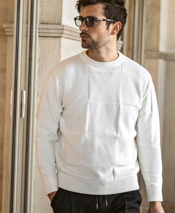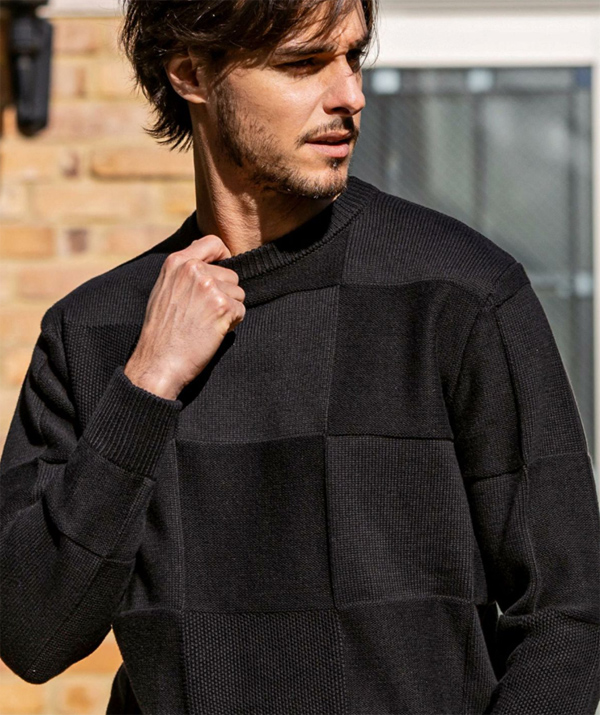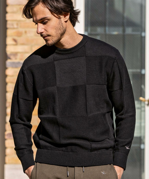 ウノピュウノ ブロック柄 クルーネックニット