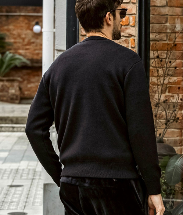 精緻に編み込まれたペイズリー柄が目を惹くジャガードニット。