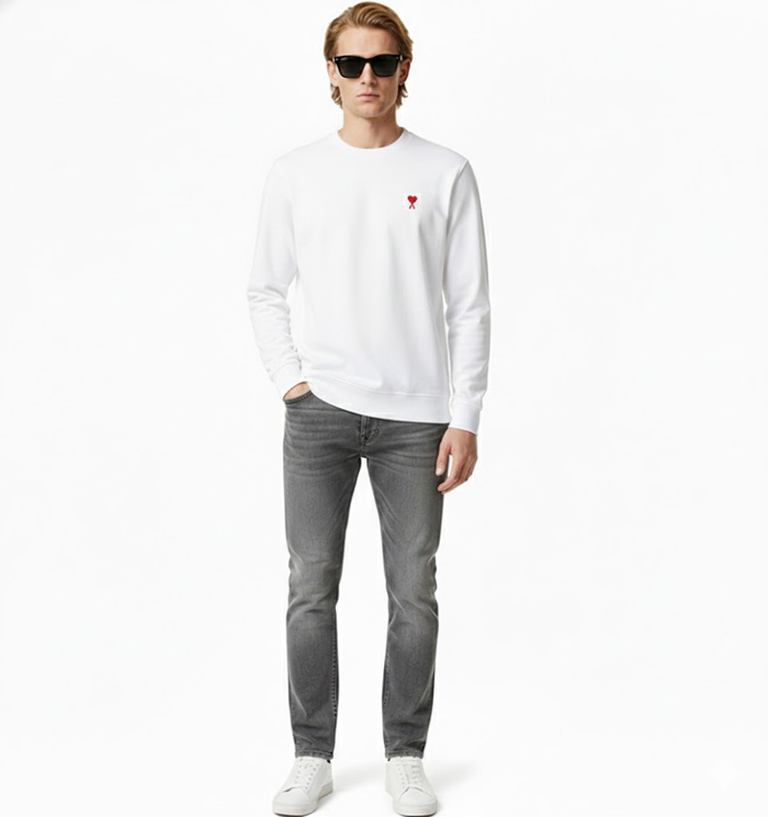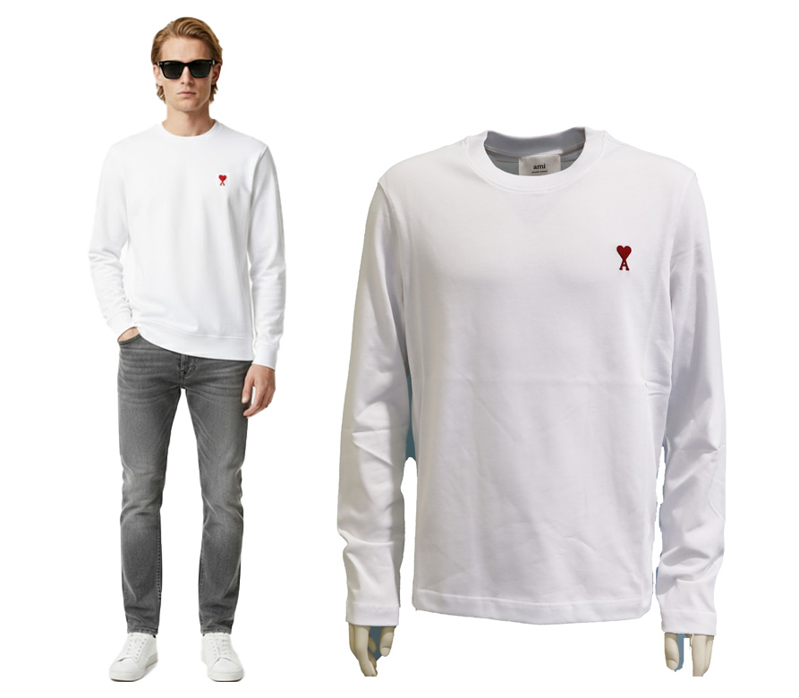 AMI アミパリス AMI DE COEUR ロングTシャツ ホワイト ヘビーコットン