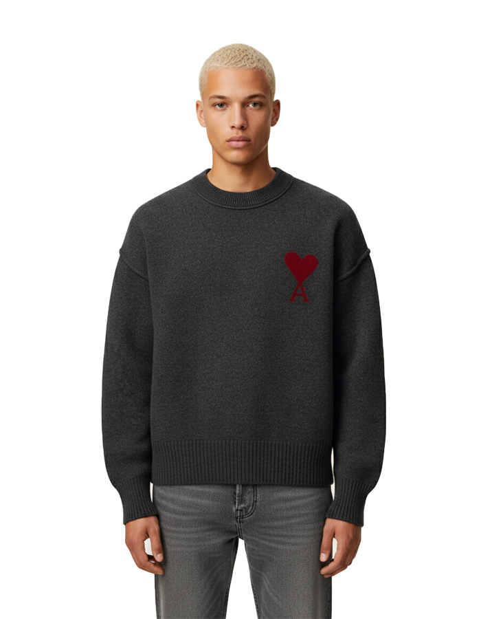 アミパリス ホワイト ウール Ami De Coeur クルーネック セーター チャコールグレー
