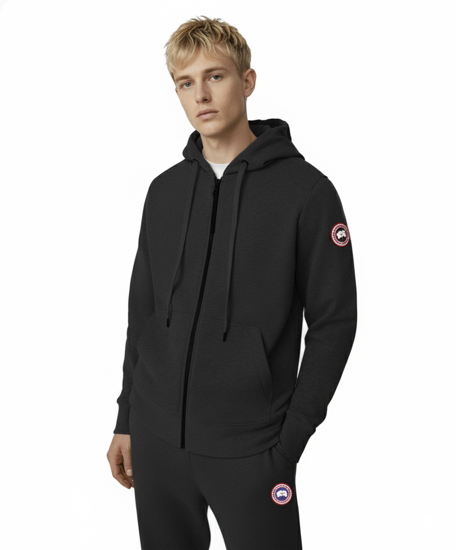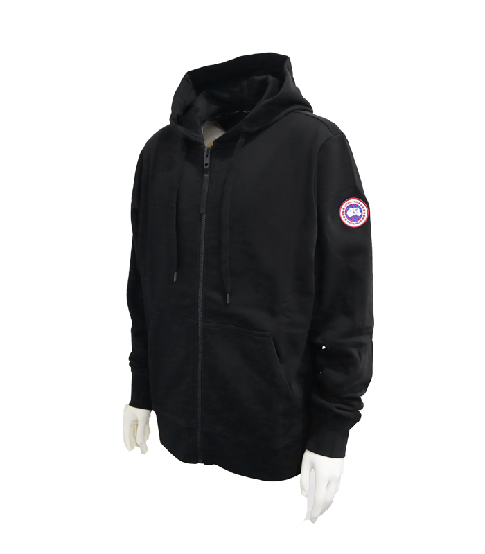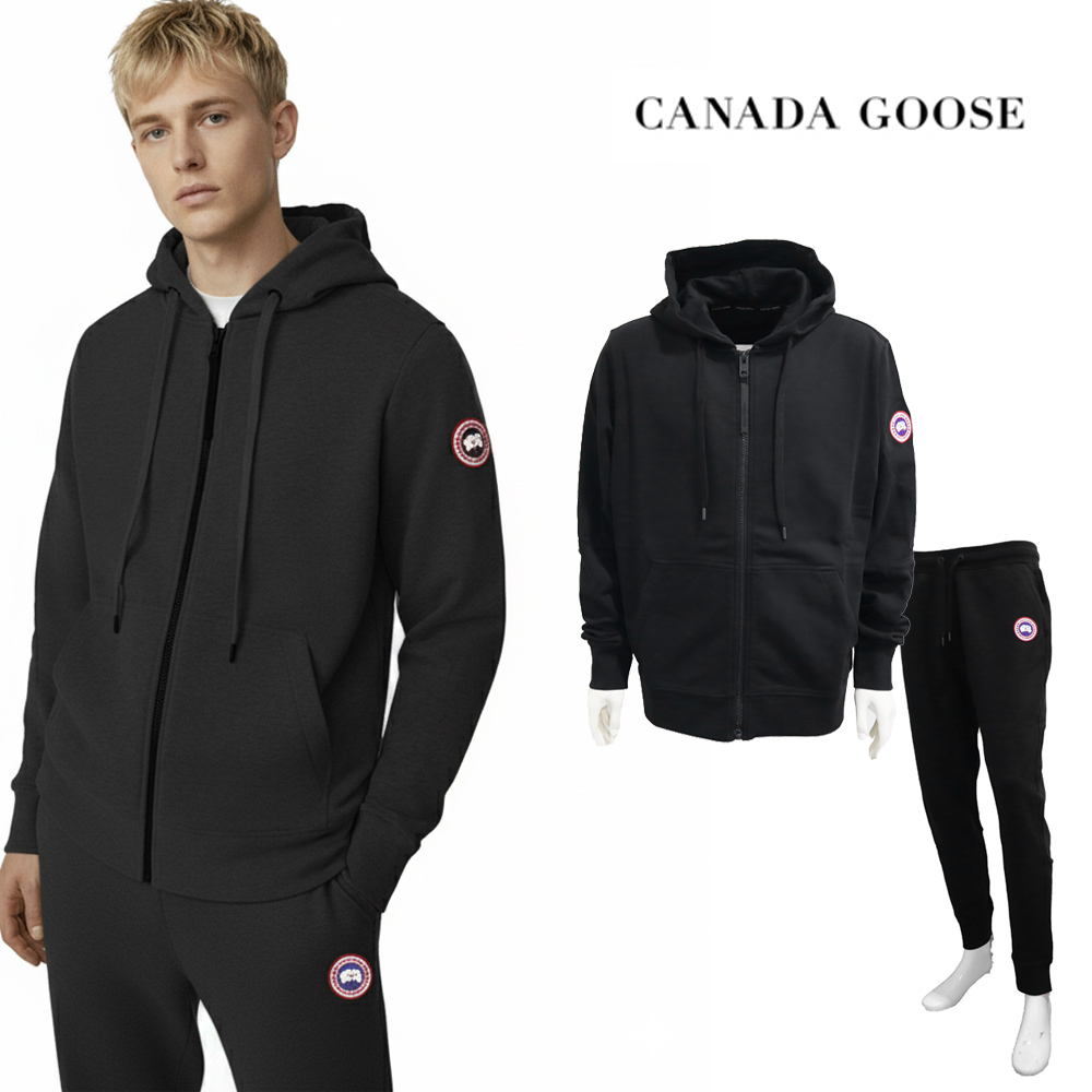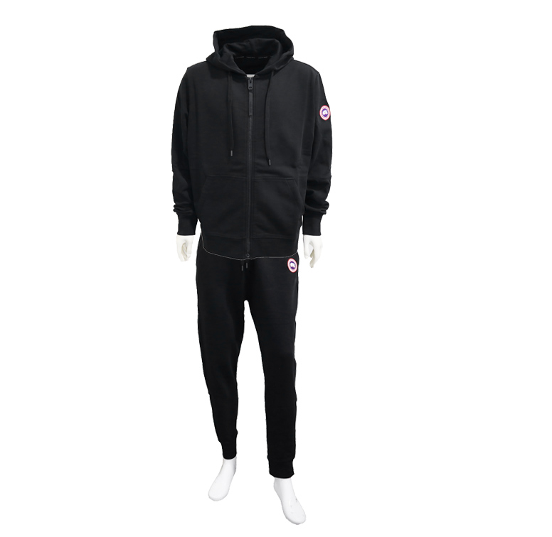 カナダグースのディスクロゴ刺繍を上下ともにワンポイントパッチ