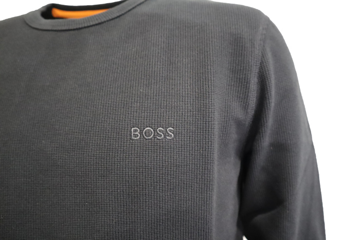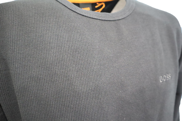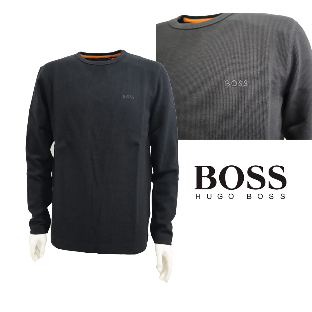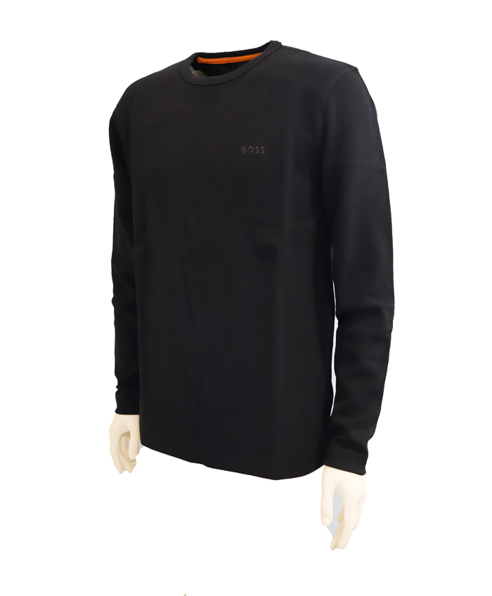 ボス ワッフル生地 ロングTシャツ ブラック