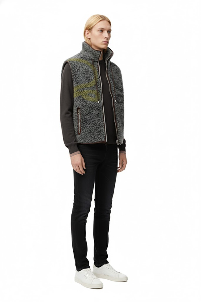 ミディアムウェイトのフリースジャカードを採用したベスト。