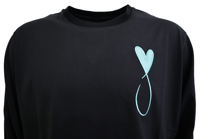 ハートフィッシュをビッグサイズで刺繍したロングTシャツ