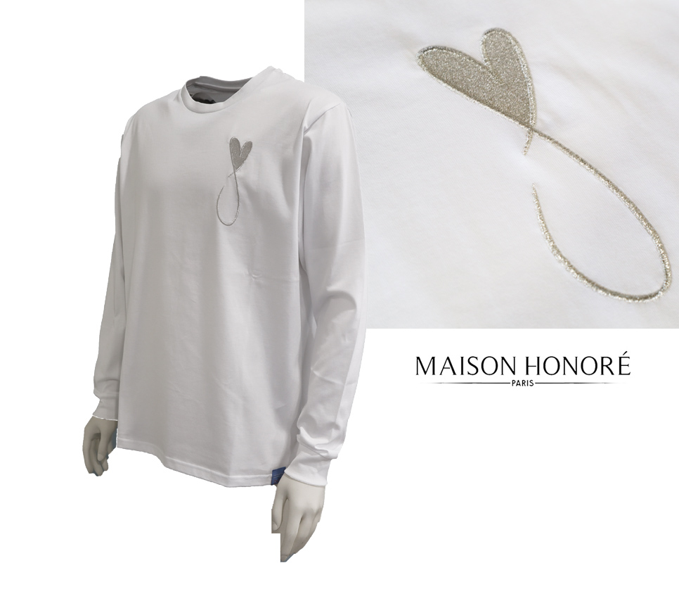 メゾンオノレパリ 長袖Tシャツ TIPHANIE BIG LOGO ホワイト×シルバー
