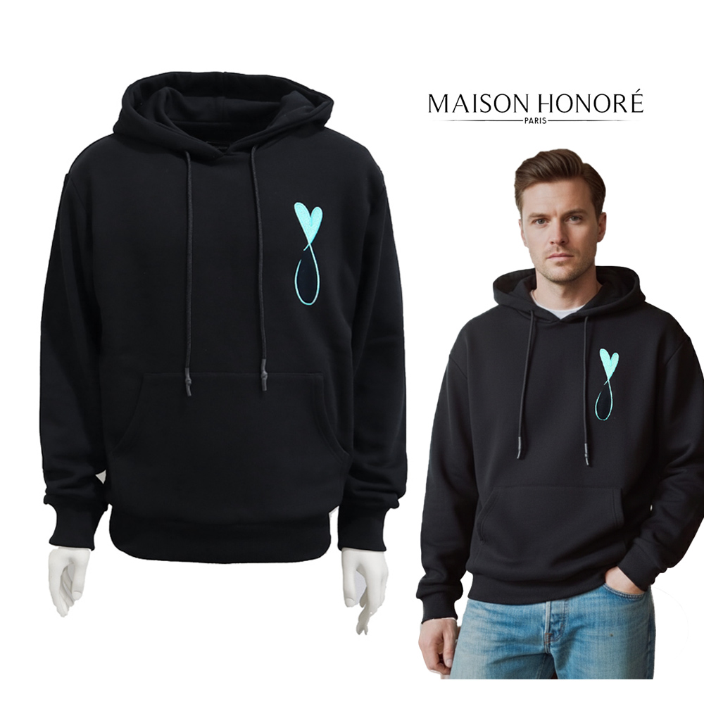 メゾンオノレパリ スウェットフーディー Tiphanie Big Logo ブラック×ターコイズ