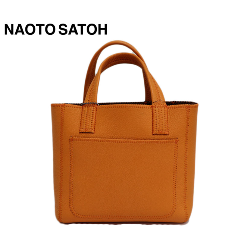 牛革ネオプレーン レザー トートバッグ オレンジ リバーシブル