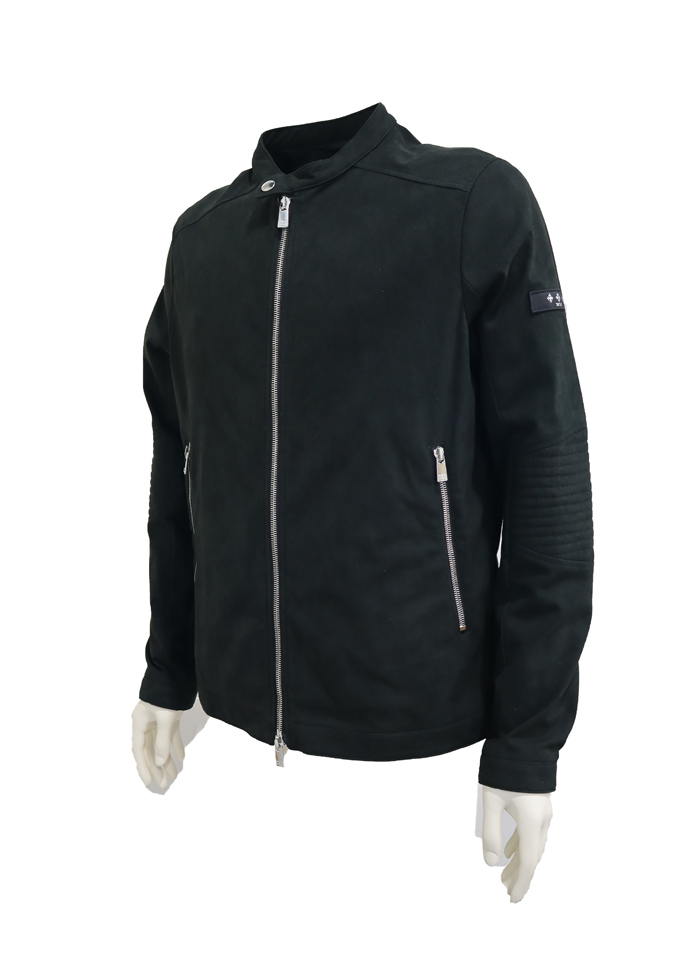 なめらかなフェイクスエードで、落ち着いた重みと品を表現したシングルライダース。